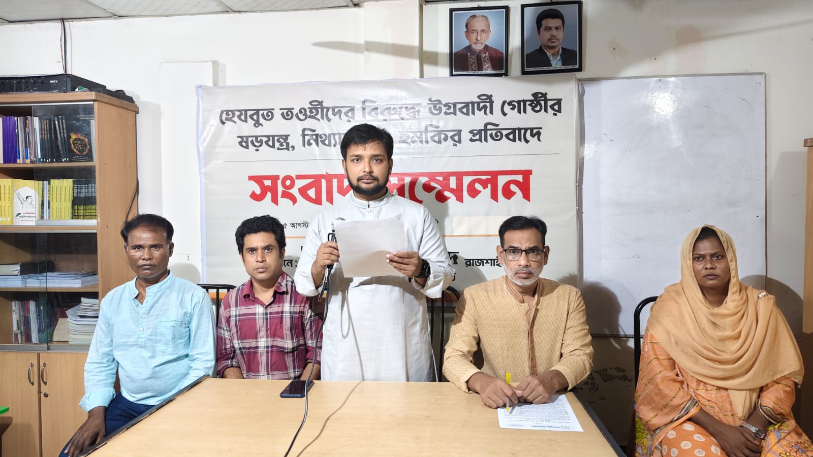 রাজশাহীতে উগ্রবাদী গোষ্ঠীর ষড়যন্ত্র ও হুমকির প্রতিবাদে হেযবুত তওহীদের সংবাদ সম্মেলন