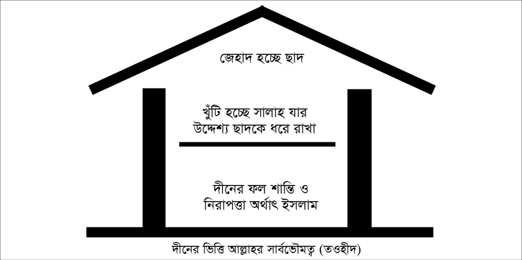 ইসলামের ভিত্তি হচ্ছে তওহীদ অর্থাৎ আল্লাহর সার্বভৌমত্ব, এটাই ‘লা ইলাহা ইল্লাল্লাহ’। আদম (আ:) থেকে শুরু করে শেষ নবী মোহাম্মদ (দ:) পর্যন্ত এ কলেমাই এই দীনের অপরিবর্তনীয় ভিত্তি যাতে কোনো দিনই “ইলাহ” শব্দটি ছাড়া অন্য কোনো শব্দই ব্যবহৃত হয় নি। আল্লাহর শতাধিক গুণবাচক নামের থেকে একটি নামও আল্লাহ তাঁর এক লক্ষ চব্বিশ হাজার, মতান্তরে দুই লক্ষ চব্বিশ হাজার নবী রসুলের কারো ক্ষেত্রেই কলেমার মধ্যে ব্যবহার করেন নি। সবার ক্ষেত্রে তিনি কলেমাতে অপরিবর্তনীয়ভাবে “ইলাহ” শব্দটিই ব্যবহার করেছেন, একবারের জন্যও ‘লা মা’বুদ ইল্লাল্লাহ’ (আল্লাহ ছাড়া কোনো উপাস্য নেই), ‘লা খালেক ইল্লাল্লাহ’ (আলল্লাহ ছাড়া কোনো সৃষ্টিকর্তা নেই), ‘লা রব ইল্লাল্লাহ’ (আল্লাহ ছাড়া কোনো প্রতিপালক নেই) ইত্যদি বাক্যগুলি ইসলামের মূলমন্ত্র হিসাবে নির্বাচিত করেন নি। যদিও এটা সন্দেহাতীত যে আল্লাহই আমাদের একমাত্র উপাস্য, স্রষ্টা, পালনকর্তা ইত্যাদি, তবুও তাঁকে এই সিফতগুলির আধার হিসাবে স্বীকৃতি দেওয়া এই দীনের ভিত্তি নয়, এই দীনের চিরন্তন ভিত্তি হচ্ছে লা ইলাহা ইল্লাল্লাহ। এই কথায় বিশ্বাস না করে, এই কথার সাক্ষ্য না দিয়ে কেউ মো’মেন হতে পারবে না।