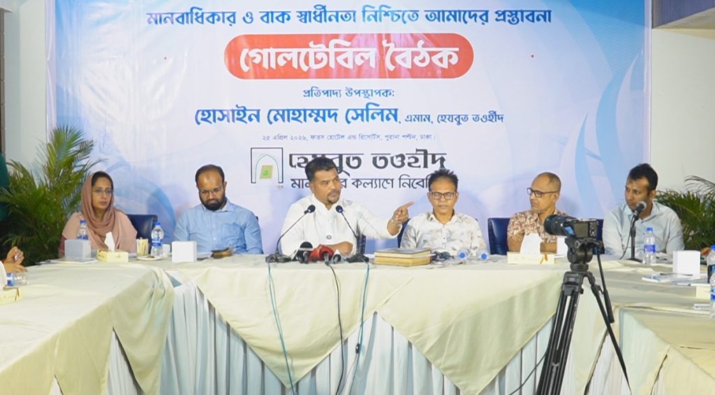 > চলমান অন্যায়-অশান্তি বন্ধেে > আল্লাহর হুকুম প্রতিষ্ঠার প্রস্তাব একমাত্র ইসলামই পারে সত্যিকার অর্থে মানবাধিকার, বাক-স্বাধীনতা ও ন্যায়বিচার নিশ্চিত করতে, এমন মন্তব্য করেছেন অরাজনৈতিক আন্দোলন হেযবুত তওহীদের শীর্ষ নেতা এমাম হোসাইন মোহাম্মদ সেলিম। রাজধানী ঢাকায় গণমাধ্যমকর্মীদের নিয়ে আয়োজিত এক গোলটেবিল বৈঠকে এই মন্তব্য করেন তিনি। এসময় চলমান বিশ্বপরিস্থিতির কথা তুলে ধরে হেযবুত তওহীদের এমাম বলেন, […]